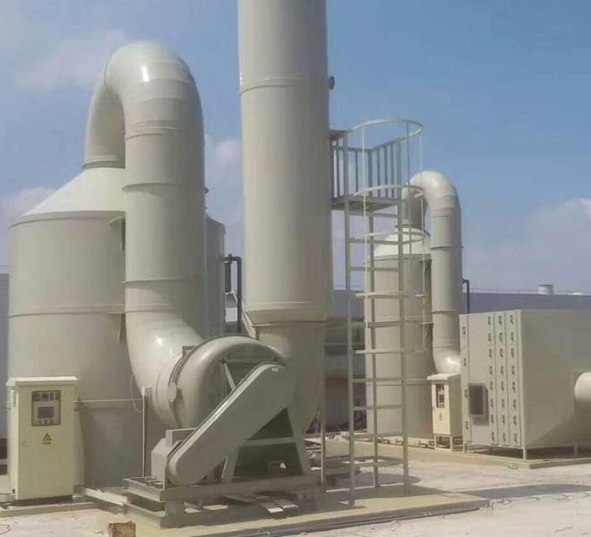 廢氣吸收塔除霧裝置沖洗周期是指除霧裝置每次沖洗的時間間隔。由于除霧裝置沖洗期間會導致煙氣帶水量加大(一般為不沖洗時的3~5倍)。所以沖洗不宜過于頻繁,但也不能間隔太長,否則易產生結垢現象,除霧器的沖洗周期主要根據煙氣特征及吸收劑確定,一般以不超過2h為宜。